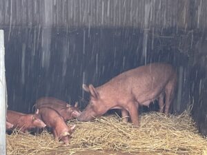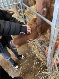 After this, we rode in the tractor trailer up to the working farm, where we encountered farm horses, chickens, cattle and rare breed pigs. The stars of the show were most definitely the sweetest calves, who were so tame and friendly and didn’t mind being petted by all of us. The piglets were also very cute and seemed to be enjoying the pouring rain!